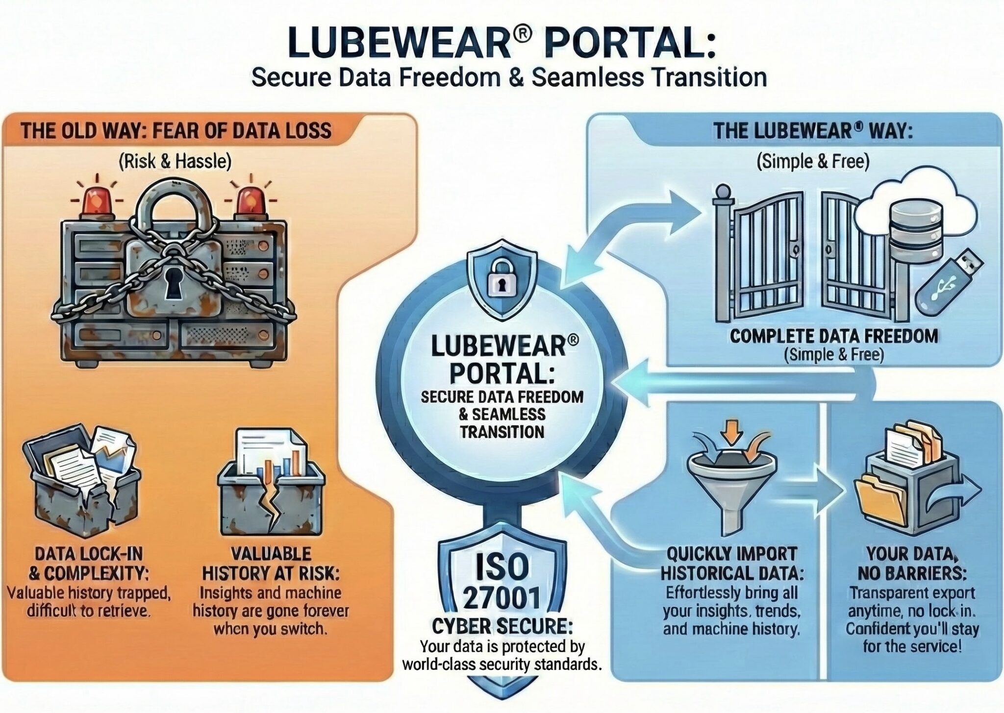 And we believe in transparency. If you ever choose to leave, your data is easy to export from our portal, with no barriers and no lock-in. That said, we’re confident that once you experience the service, insight, and flexibility of LubeWear®, you won’t want to go anywhere else.