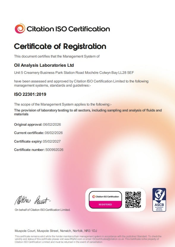 Oil Analysis Laboratories has extensive processes for when failure is not an option including a full ISO22301 business continuity ISO management system.